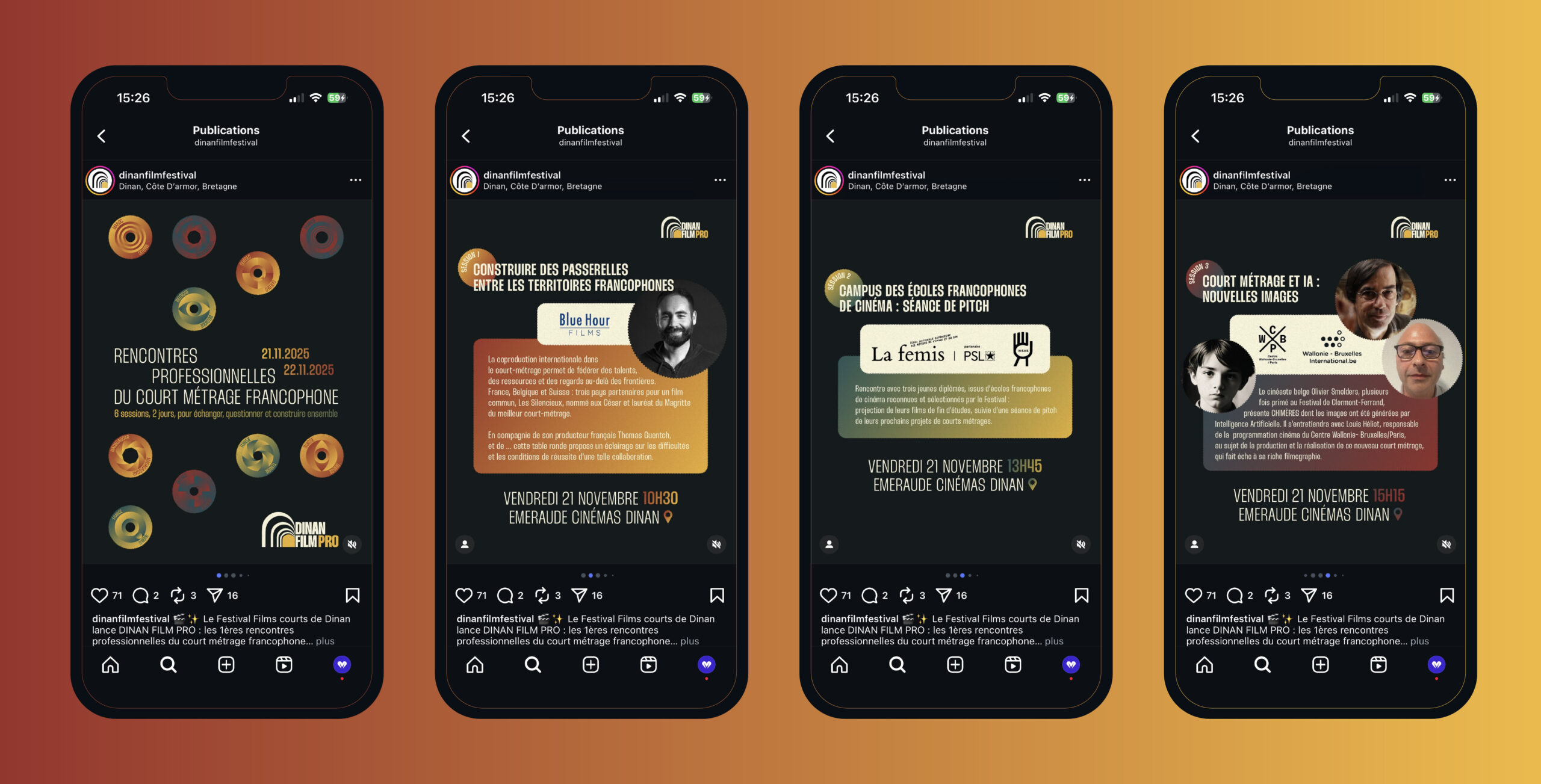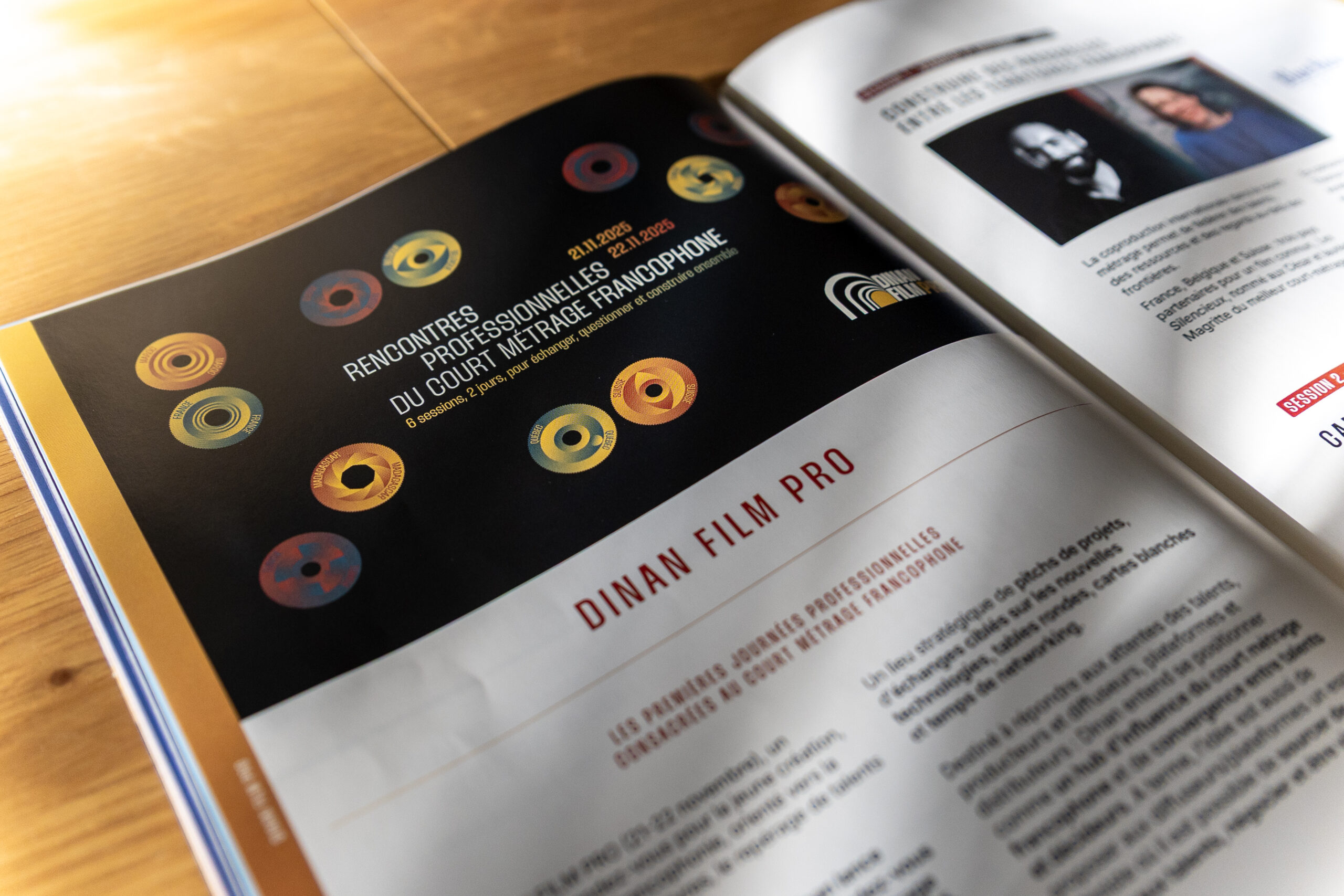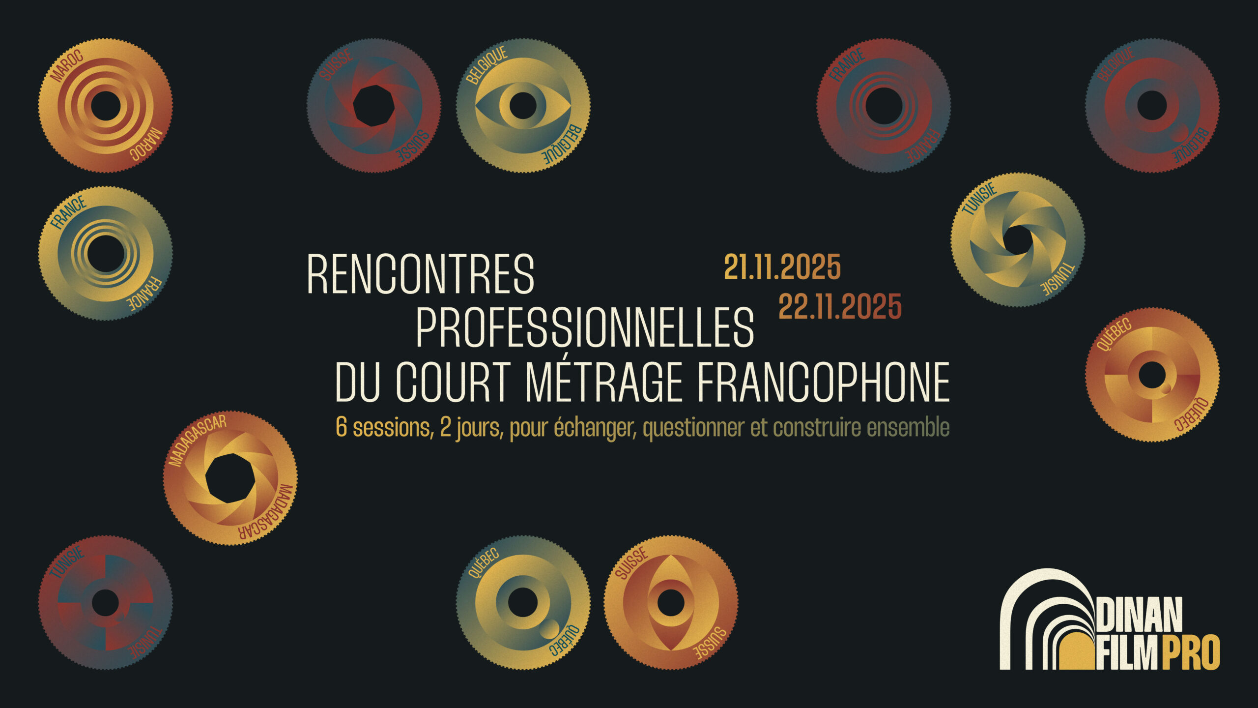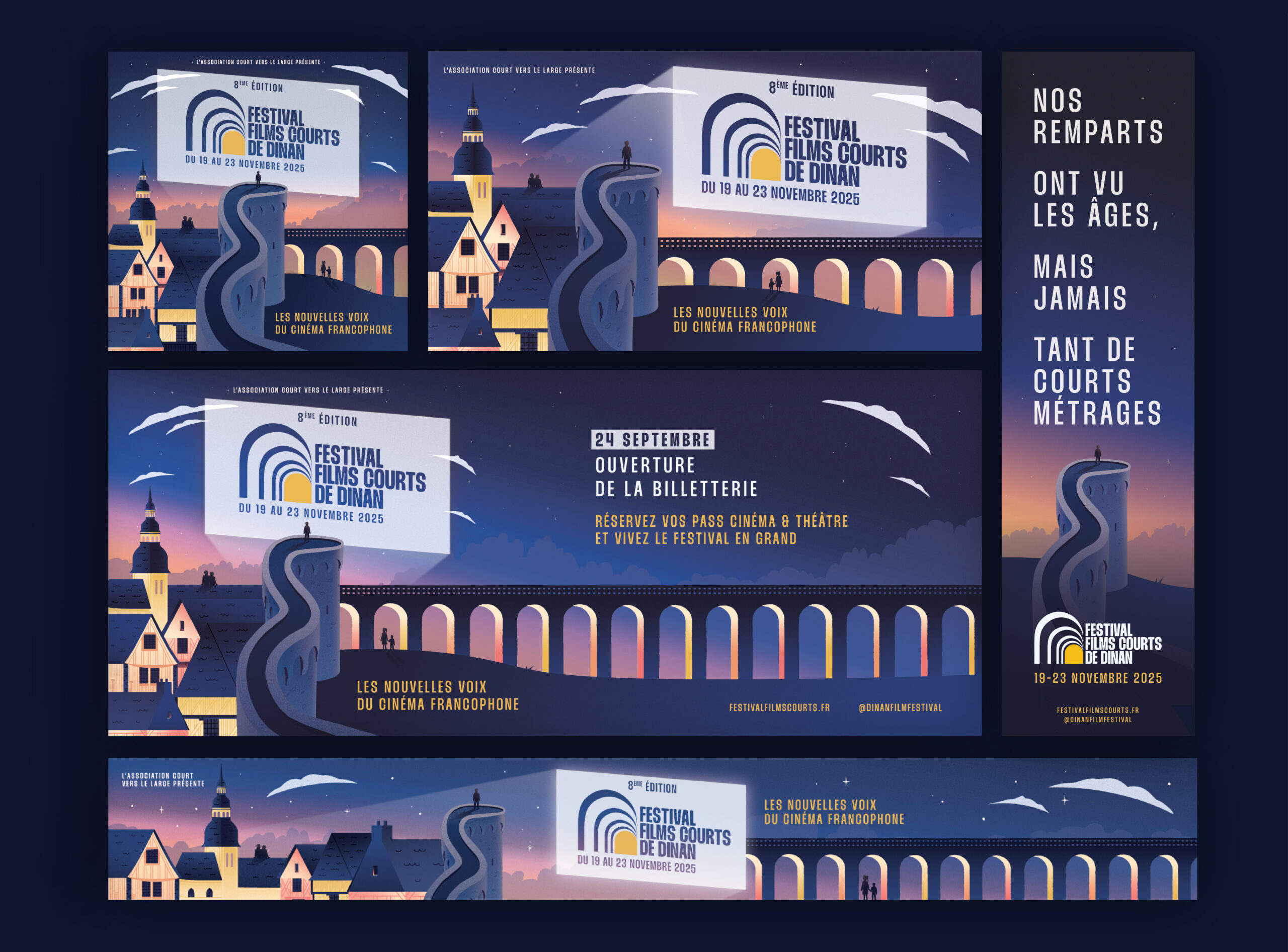 Cette édition marquait aussi une nouvelle branche professionnelle du festival, Dinan Film Pro, dont j’ai aussi crée l’identité visuelle. L’objectif : affirmer la place de la francophonie dans le cinéma et accompagner le festival dans son évolution vers une dimension professionnelle.